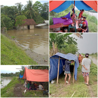 "Pokoknya selama air belum surut dan untuk mengantisipasi terjadinya banjir susulan maka saya akan terus tidur di tenda ini, sebab dirumah saya tidak bisa di tempati karena masih digenangi air," ucap Pak Pujianto warga dusun 12 rawa kijing.Rabu,26 Oktober 2022.
