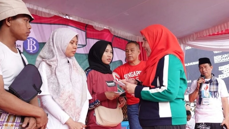 Dalam acara tersebut, Wali Kota Bandar Lampung, Eva Dwiana turut memberikan bantuan beasiswa kuliah, sepeda, dan tiket umrah gratis kepada para peserta jalan sehat.